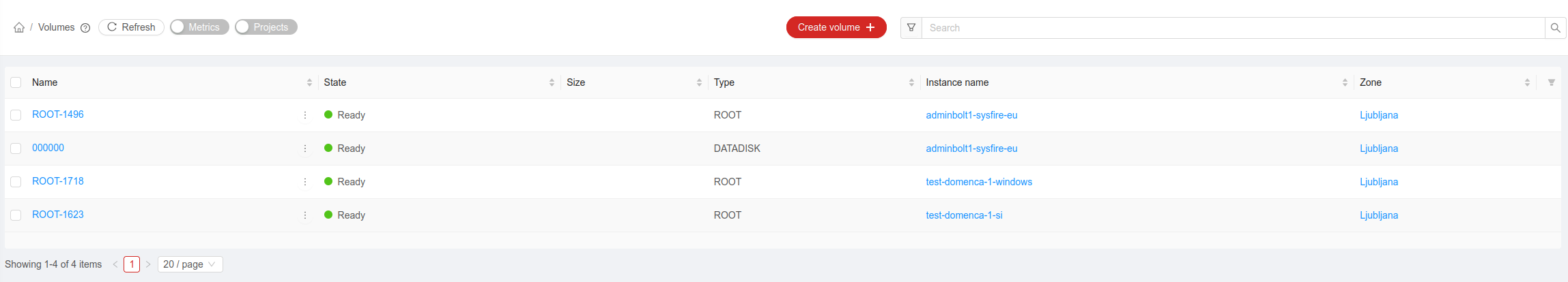 2. V levem meniju kliknite na Storage in nato Volumes. Odpre se vam seznam diskov.