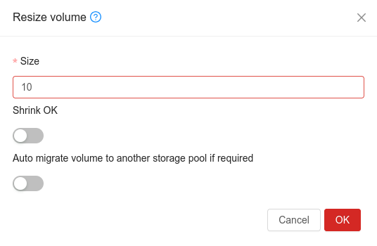 6. Odpre se vam okno, kjer vpišete želeno velikost diska in kliknete OK. V našem primeru imamo trenutno velikost 8 GB, želimo pa 10 GB.